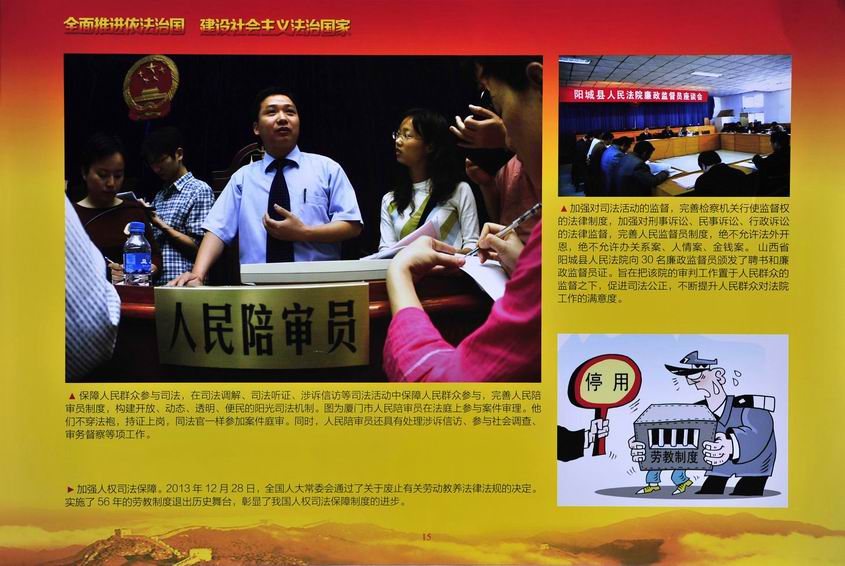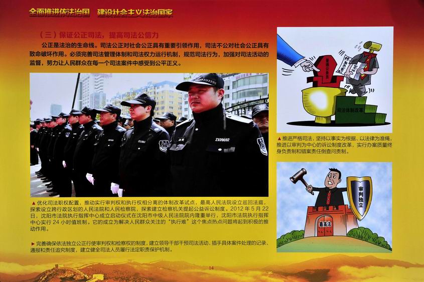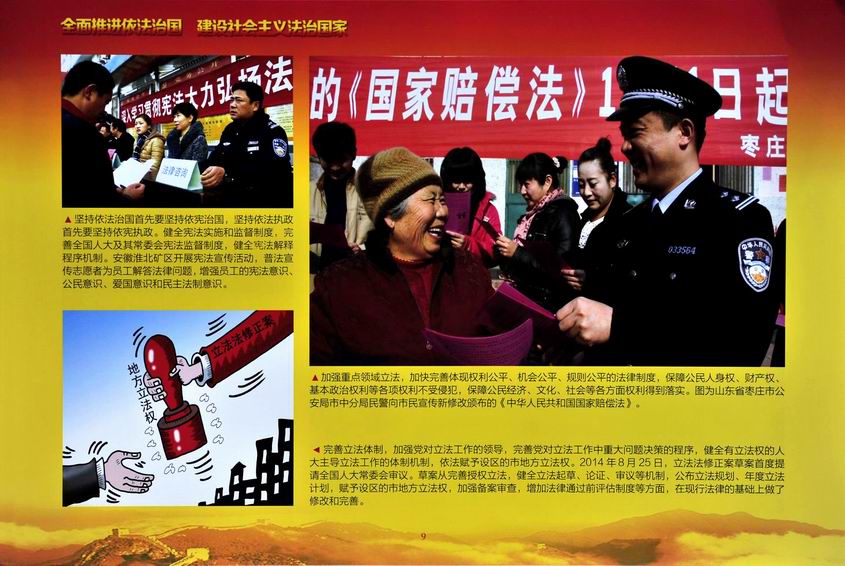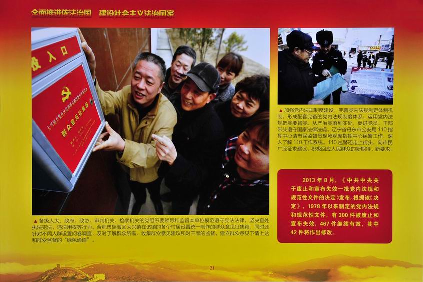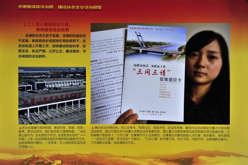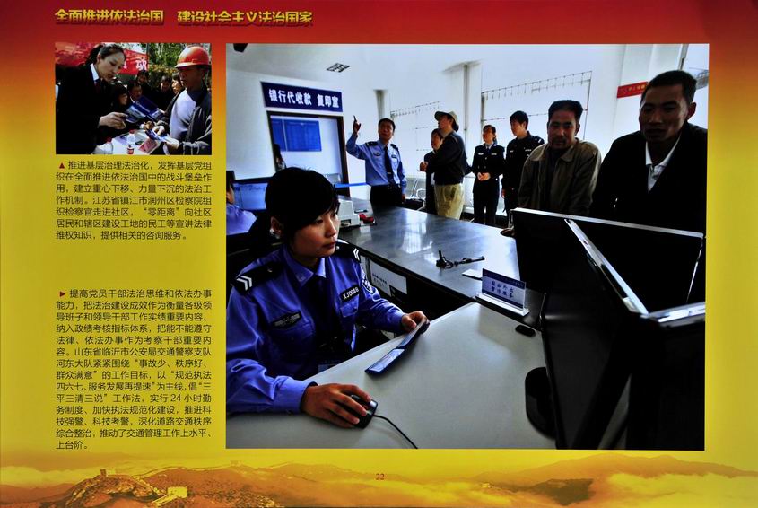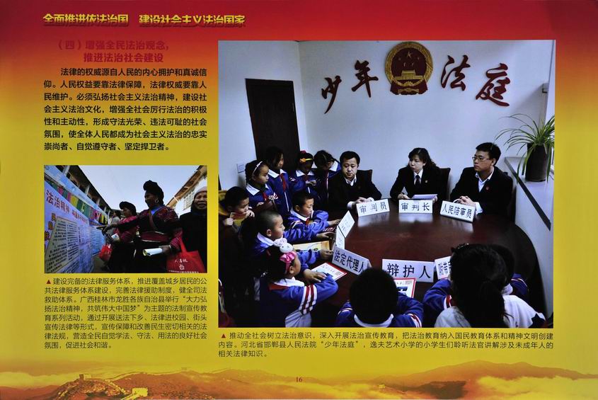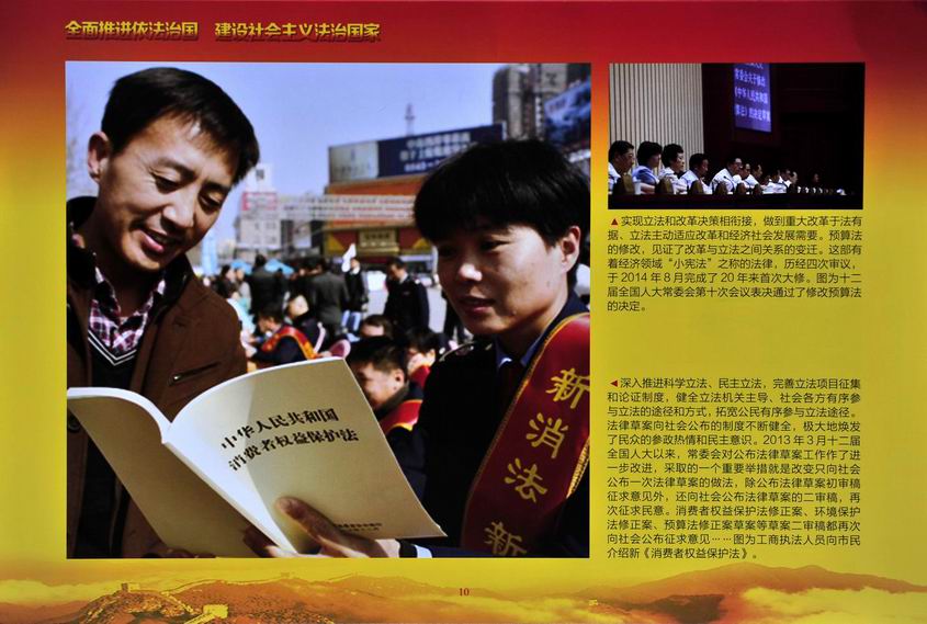 2014年10月,中国的依法治国进程又迎来一个重要时刻。党的十八届四中全会把法治中国建设提升到前所未有的高度——在新的历史起点上,会议对法治国家、法治政府、法治社会一体建设作出全面部署。依法治国事关党执政兴国、事关人民幸福安康、事关党和国家长治久安。依法治国唤起的制度力量,必将有力提升国家治理体系和治理能力现代化,为建设中国特色社会主义法治国家,实现中华民族伟大复兴中国梦提供有力保障。