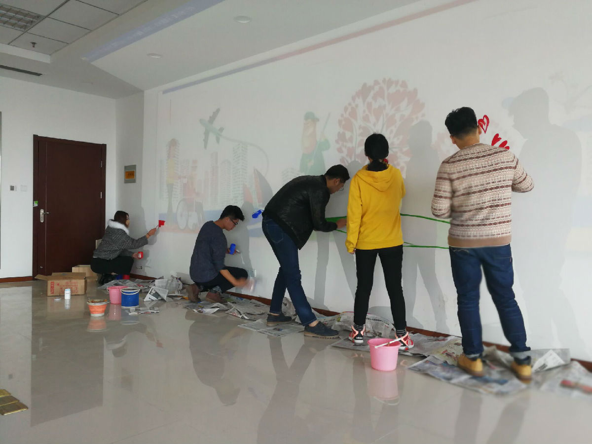 青年兴则国家兴,青年强则国家强。为深入贯彻落实党的十九大精神,推动十九大精神深入青年、根植青年。近日,艺术学院益行粉刷匠团队在南通中南谷启瑞广场为南通市青年社会组织孵化基地进行了“粉刷匠益行绘初心志愿服务”墙绘创作活动。