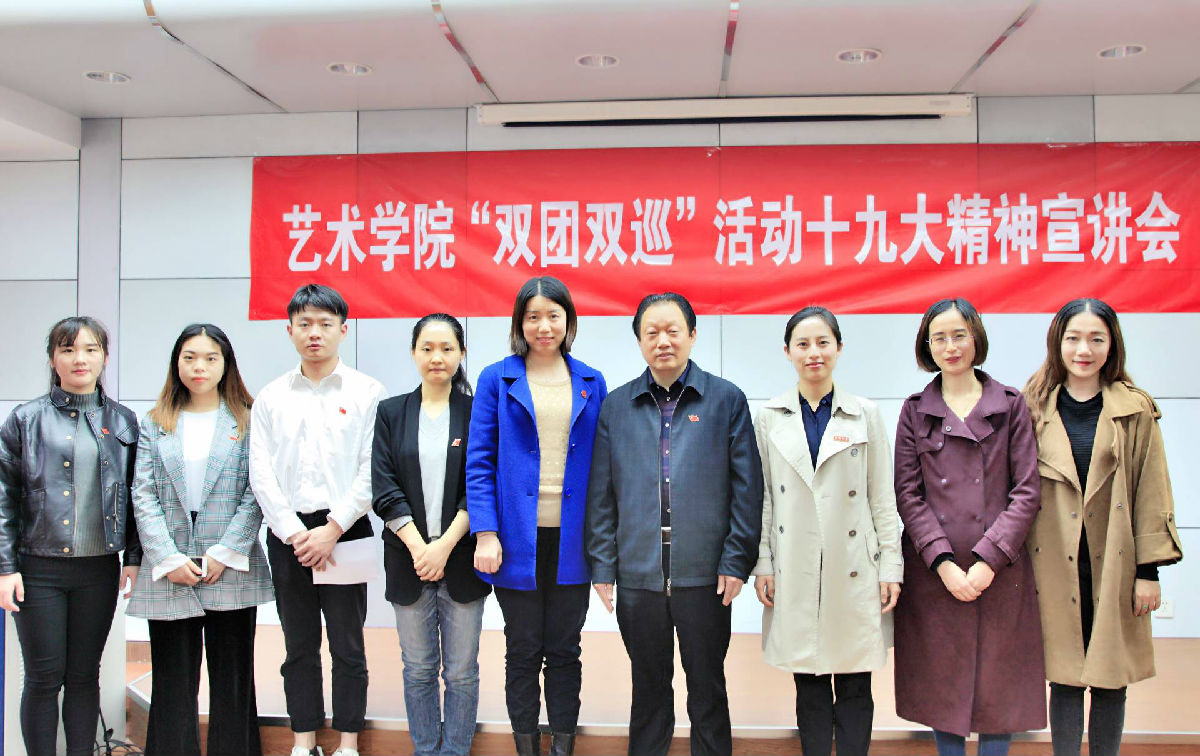4月26日,南通大学艺术学院举办“双团双巡”活动十九大精神宣讲会,校团委徐懿然副书记,学工处思政科周煜科长,艺术学院党总支副书记王德宽书记,团委副书记叶欣欣老师,学工办副主任俞彤辰老师,辅导员李峰老师、张瑶老师及全体入党积极分子出席了本次宣讲会。