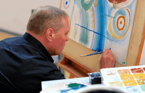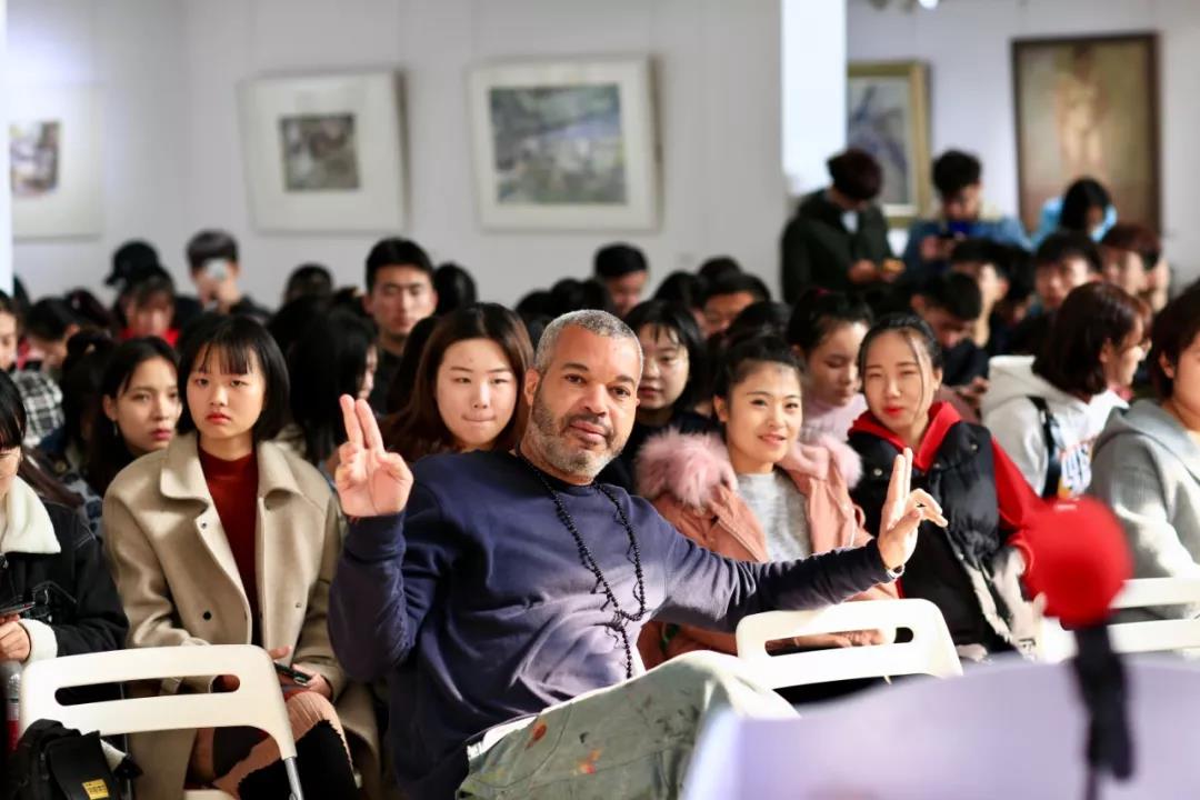 讲座现场,四位艺术家还就当代艺术的表现手法与艺术学院师生展开了探讨,并结合自身的研究领域及创作特点进行了现场创作表演。他们建议,在艺术创作中要充分把握“画面”、“色彩”与 “情感”三要素的关系,鼓励大家立足人的生活与文化,将内心的情感蕴于外在的色彩、画面中,不断探索对生命的思考。