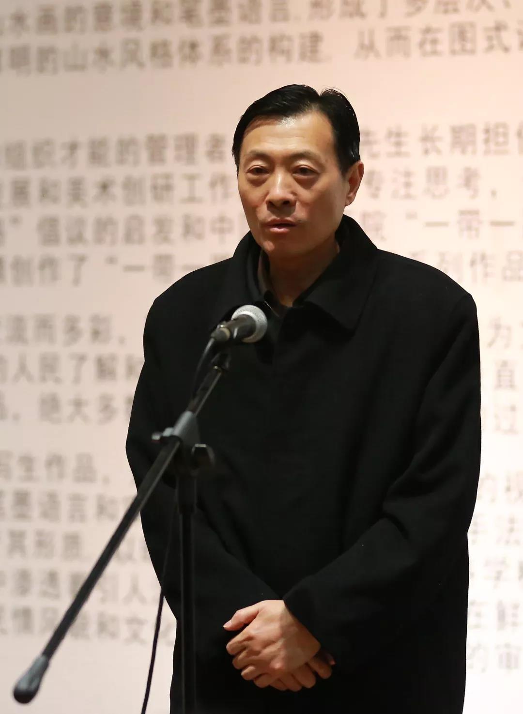 中国国家画院常务副院长卢禹舜发表讲话。他介绍说,他的展览作品主要采用了现实主义、浪漫主义等表现手法去观照“一带一路”沿途的自然与人文风光,在创作全过程中不乏中国表述的形成、中国标识的建立与中国精神的彰显。他指出,“一带一路”倡议是建立在中国核心价值基础上,全世界广泛认可、积极参与、共同建设、互利共赢的理念,而艺术创作从始至终都应该与民族的核心价值紧密相连,这是中国艺术家应有的责任与担当。他认为,艺术创作的光辉是人民给予的,艺术家在艺术创作中理应考虑国家文化、社会感受与人民需求,在有信仰、有情怀、有担当、有责任的前提下坚定文化创新,坚持创新创作, 坚守艺术理想,为中国民族的伟大复兴、为中国梦的早日实现贡献力量。
