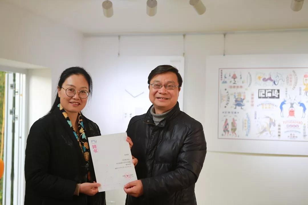 讲座现场,艺术学院党总支书记汪松明为陈铁梅老师颁发聘书,聘任其担任艺术学院兼职教授。