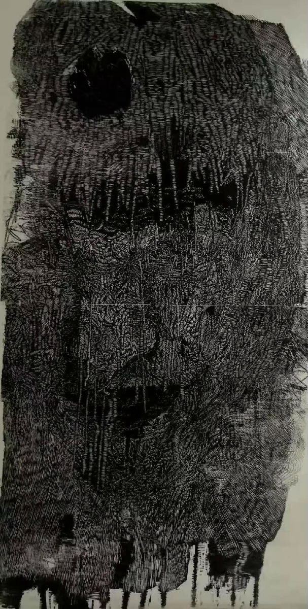 木刻《涤尘》 180cmx90cm