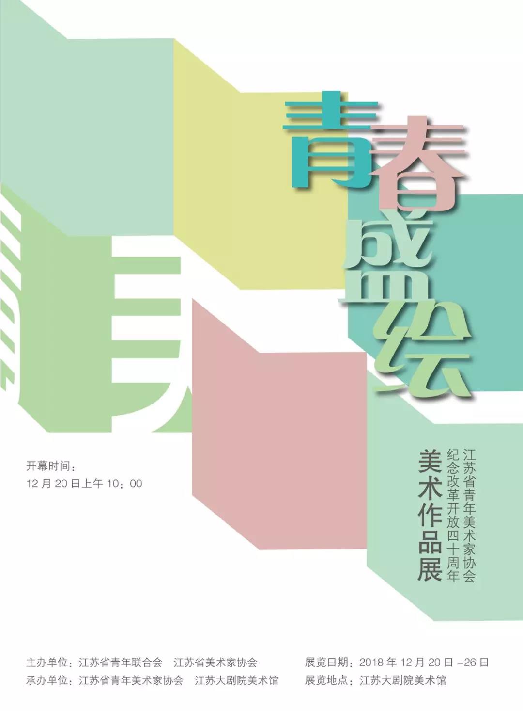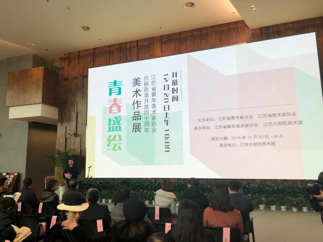 本次展览以“青春盛会”为学术主题,由江苏省青年联合会、省美术家协会共同主办,省青年美术家协会、江苏大剧院美术馆承办,经全省公开征集,各艺委会、各设区市青美协推荐,评审出包括国画、油画、版画、水彩、粉画、漆画、雕塑等各类美术作品180余件,涵盖了历史事件、经济建设、文化活动、自然风光、情感表现、人文关怀等不同的题材,展现了青年美术家们在创作中敢于创新的勇气、敏捷活跃的思维、丰富多样的形式,充分体现和展示了青年艺术家们的艺术探索、艺术才华和艺术修养,反映了江苏青年美术创作的新视野、新成果、新特点,也代表了江苏青年美术的专业水准。