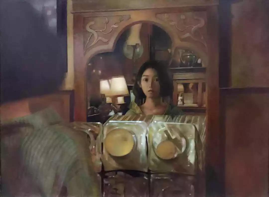 布面油画 《镜子里的女孩》 80cm×100cm