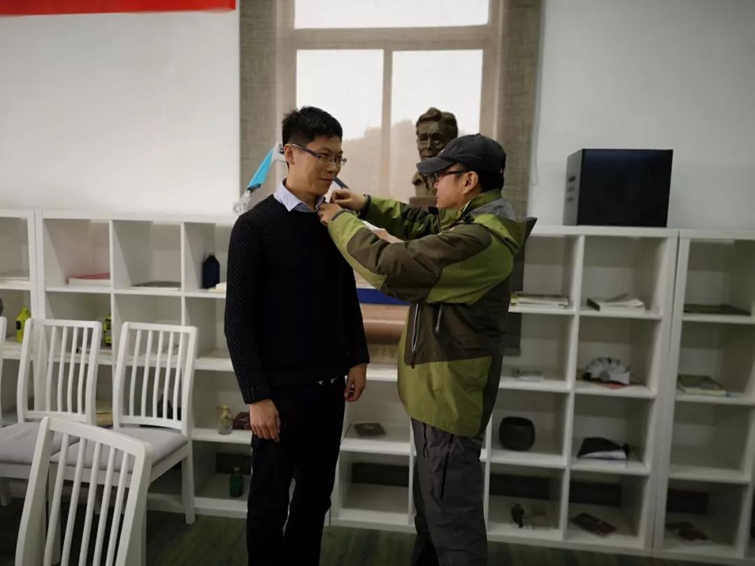艺术学院研究生办公室主任周亚东博士作为教师代表为鲁大为佩戴校徽,通过庄严的仪式引导其梳理坚定的责任感、强烈的使命感与高度的荣耀感,并以此激励未来的艺术教育之路。艺术设计系主任黄天灵、环境设计专业负责人徐颖婷分别介绍了相关专业的发展情况及发展规划。