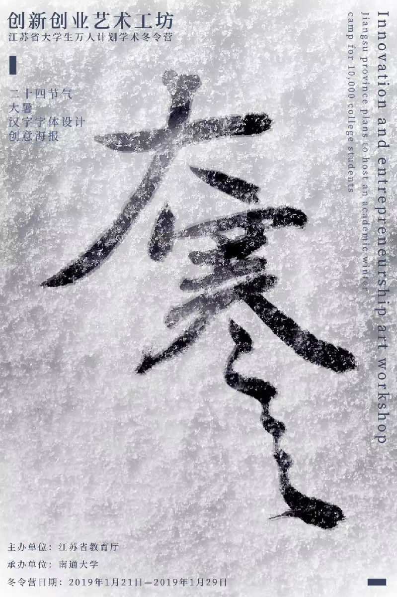 2019年1月21日,南通大学承办的江苏省大学生万人计划学术冬令营启动。22日,汉字字体创意海报设计工坊正式开始授课,12位来自江苏省内高校的学生们齐聚一堂,开始了为期一周的学习。