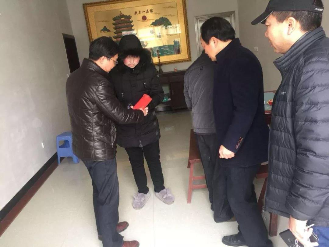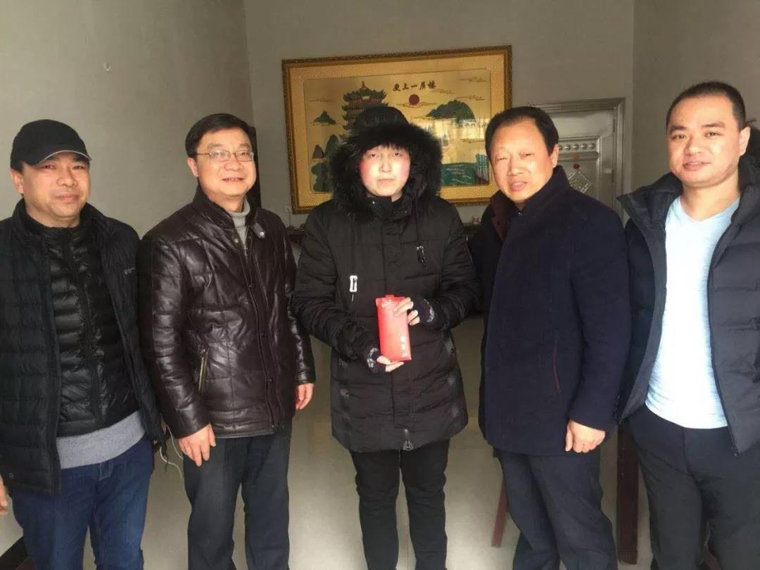 1月28日,艺术学院专员汪松明、王德宽,班主任张成禄老师、辅导员李锋老师一行四人专程来到扬州市江都区詹家庄,看望慰问我院2015级视觉传达班患病学生黄秦鑫。