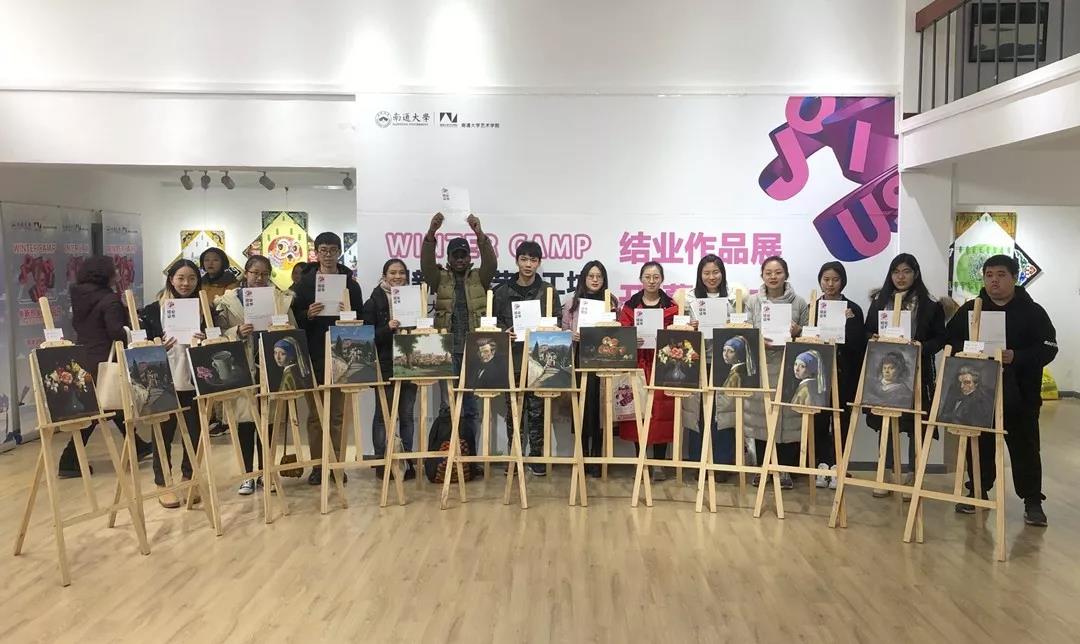 作为本次江苏省高校学术训练项目中仅有的两项艺术类冬令营之一,南通大学精密瞄准国家创新驱动发展战略,精准对接立德树人根本任务,着力培养艺术领域未来领军人才,为本次冬令营精心设置了猪年生肖布艺系列产品设计与制作工坊、汉字字体创意海报设计工坊、颐生状元酒品牌包装设计工坊、“慧眼空间”手绘表现艺术工坊、古典油画材料与技法工坊和板鹞风筝制作工坊等6个创新艺术小组,营员们自由选择进入6个创新艺术小组。在为期9天的冬令营学习中,营员们上午集中理论学习、下午和晚间进行小组实践操作,既邀请了国家文化部非物质文化遗产司原巡视员(主持工作)马盛德、当代著名文化学者谢海、杭州师范大学设计学院副院长朱珺、敦煌研究院一级讲解员吕爱、台湾平面设计协会荣誉理事长杨佳璋、苏州大学工艺美术研究所所长袁牧、南京艺术学院科研处副处长吕少卿等专家学者作专题讲座,31位相关专业教师还进行实践操作与辅导,同时还组织全体营员赴各类艺术基地实践考察,汲取艺术创作营养,既保证了前沿艺术理论的深入渗透,也保证了实践成果的有效呈现。103名营员圆满完成了学习任务,全部顺利结业。