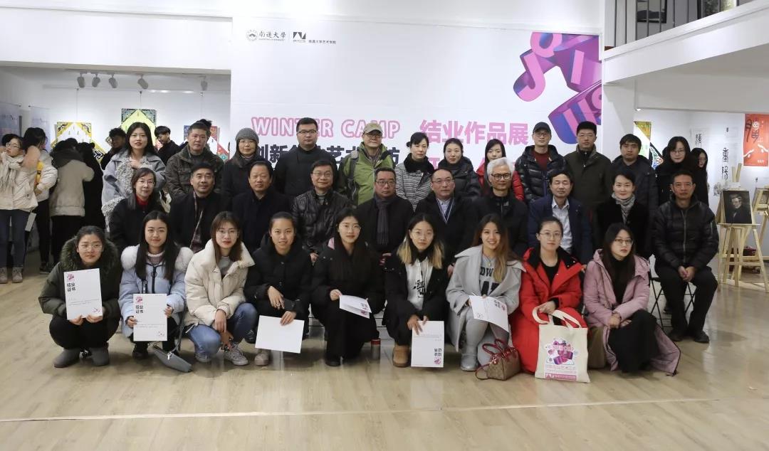 1月29上午,由江苏省教育厅主办、南通大学承办的江苏省高等学校“创新创业艺术工坊”万人计划学术冬令营结业典礼暨结业作品展在南通大学艺术学院美术馆隆重举行。南通大学党委学生工作部部长贲智勤,南通大学教务处副处长郭荣祥,南通市政协常委、南通市设计师协会会长张卫,南通大学艺术学院(建筑学院)党委书记马列波,南通大学艺术学院(建筑学院)专员汪松明,南通大学艺术学院(建筑学院)副院长吴蓉,南通大学艺术学院(建筑学院)专员王德宽,南通颐生酒业有限公司总经理张泉汇等嘉宾受邀出席。来自省内38所高校的103名营员及南通大学艺术学院(建筑学院)部分师生参加活动。南通大学艺术学院(建筑学院)党委副书记、副院长沈江主持活动。