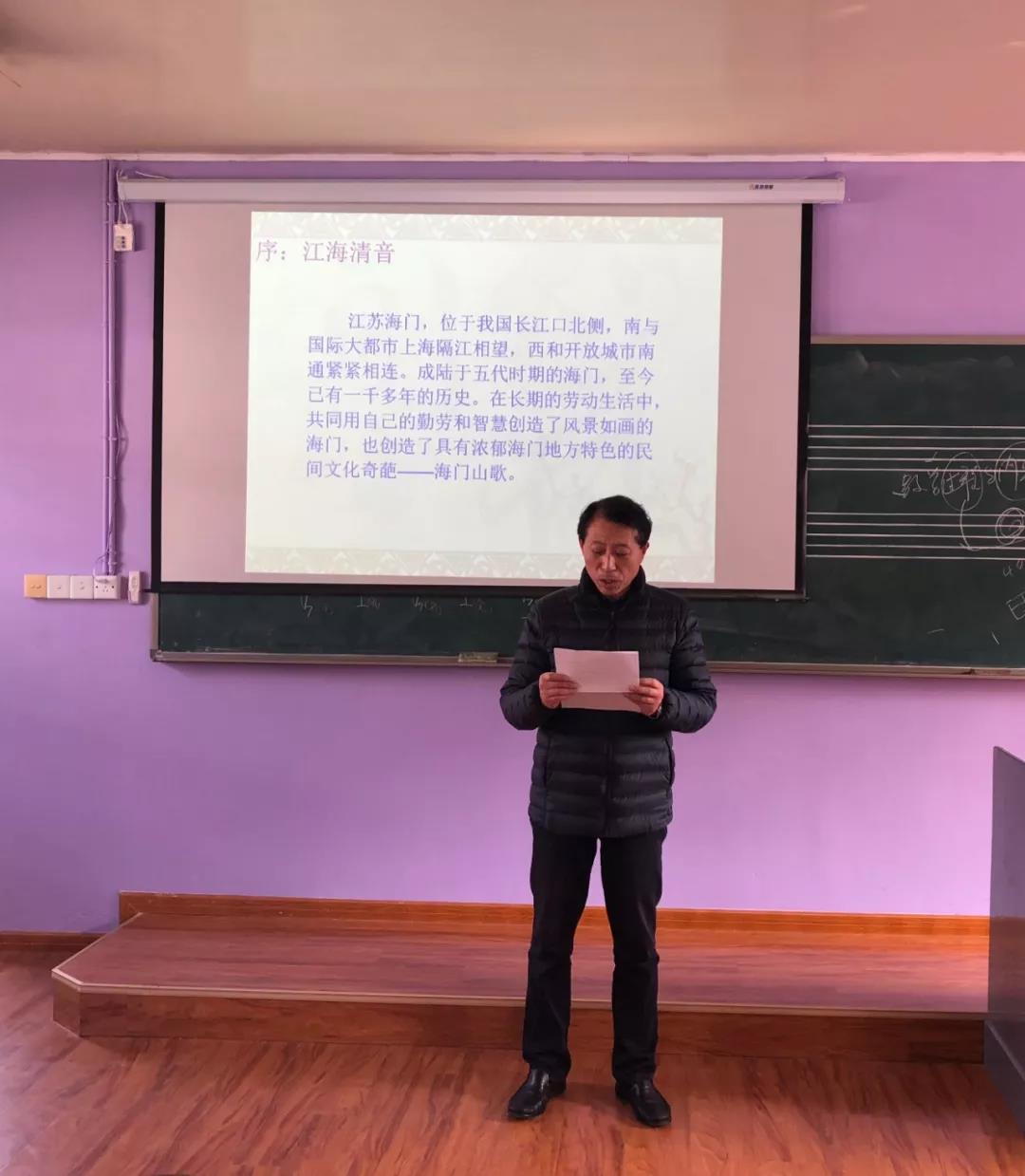 3月4日,国家级非遗海门山歌传承人、中国戏剧家协会会员、海门山歌艺术剧院院长宋卫香受邀来到南通大学艺术学院,为音乐师范161班全体同学上了一堂生动的民间音乐课。