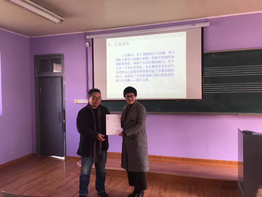 课前,宋卫香受聘为南通大学艺术学院兼职教授,艺术学院副院长张卫为其颁发聘书,副院长吴蓉、音乐系主任朱健、副主任徐海东参加仪式。