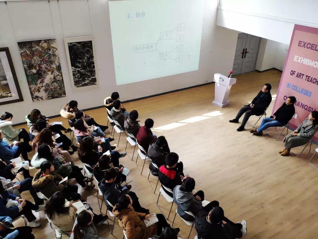 导师代表高源用ppt形式充分展示了优秀作品创作的要点。他强调,一幅好的作品,从立意到构图,从造型到笔墨,从配色到意境,都应该统筹兼顾。此外,他着重强调了综述撰写学术道德的诚信和学术规范的严谨,并向学生推荐了相关书籍。