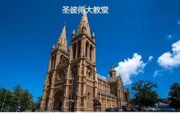 【圣彼得大教堂】坐落与北阿德莱德区威廉王大街与彭灵通大街相交处。宏伟的外观,昂贵的材料,精细的建造,使其成为全澳最有特色的歌特式教堂经典建筑。教堂正门与巴黎圣母院的正门非常相似,正门的圆花窗也几乎一模一样。彩色玻璃窗上还绘有栩栩如生的圣经故事和南澳大利亚的古往今来。