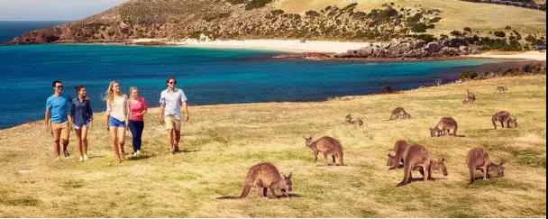【袋鼠岛】是澳大利亚第三大天然岛屿,小岛全长155公里,宽55公里。岛上四分之一的面积被定为国家公园和保护区。袋鼠岛是远离城市喧嚣的人间净土,是澳大利亚最负盛名的野生动物观光区和体验自然美景的好地方,沿着长长的海岸线,是高耸的悬崖峭壁和避风港湾,可以看到阿德莱德经典的自然风光。