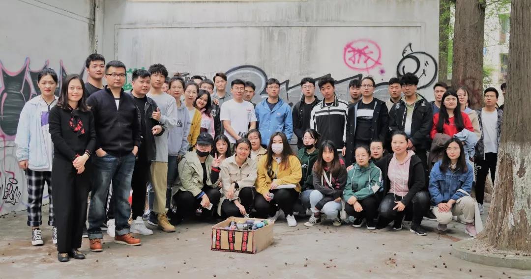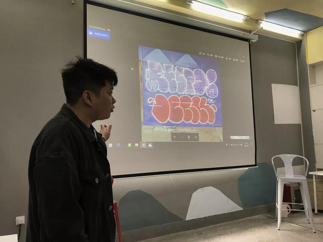 在理论传授环节,薛雨华对“GRAFFITI”墙绘涂鸦的基本风格形式作了详细的介绍,并对创作构图、字体设计、色彩搭配等进行系统专业的解读。在现场创作环节,UP CREW团队即兴为学生们示范创作了墙绘字体设计,熟练的喷涂技法、新锐的构图表现得到同学们的一致赞叹,让同学们对于新兴时尚的新锐艺术有了深入的认识,也对墙绘艺术的多样化表现有了新鲜的见解。