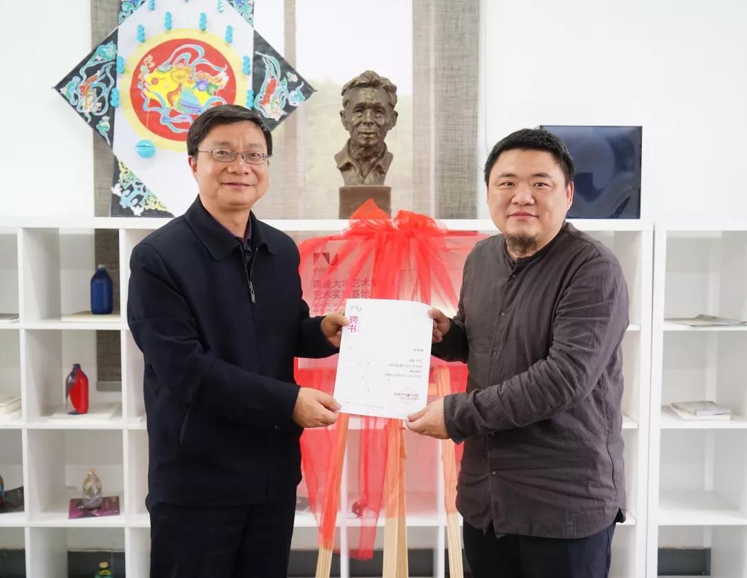 仪式中,学院专员汪松明为洪晨颁发聘书,聘任其为艺术学院兼职教师。