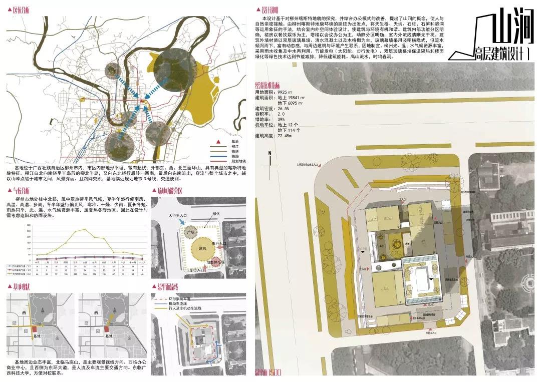 本设计基于对柳州喀斯特地貌的探究,结合办公模式的改善,提出山涧的概念,使人与自然亲密接触。并且因地制宜采用绿色技术达到节能减排,降低建筑能耗。高山流水,时鸣春涧。