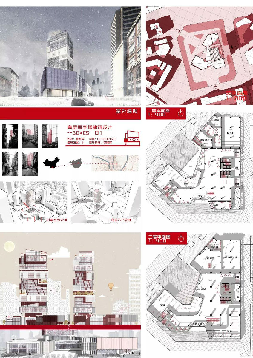 场地周边的肌理如盒子般散落,堆砌出私密和共享空间。高层建筑本身就像一个大盒子,容纳不同的空间和行为。我希望高层建筑主体可以体现原本场地的逻辑,把场地中原本散落的盒子重新镶嵌组织到塔楼这一个大盒子中。