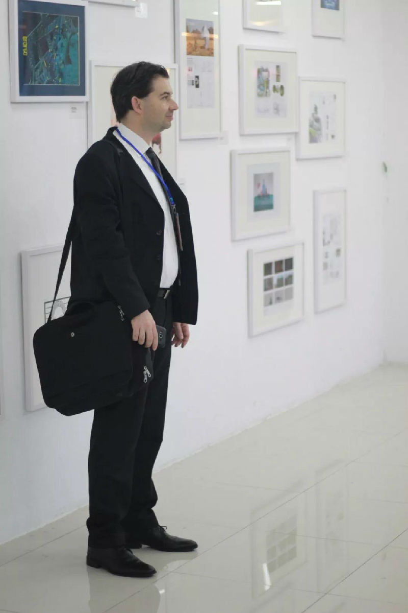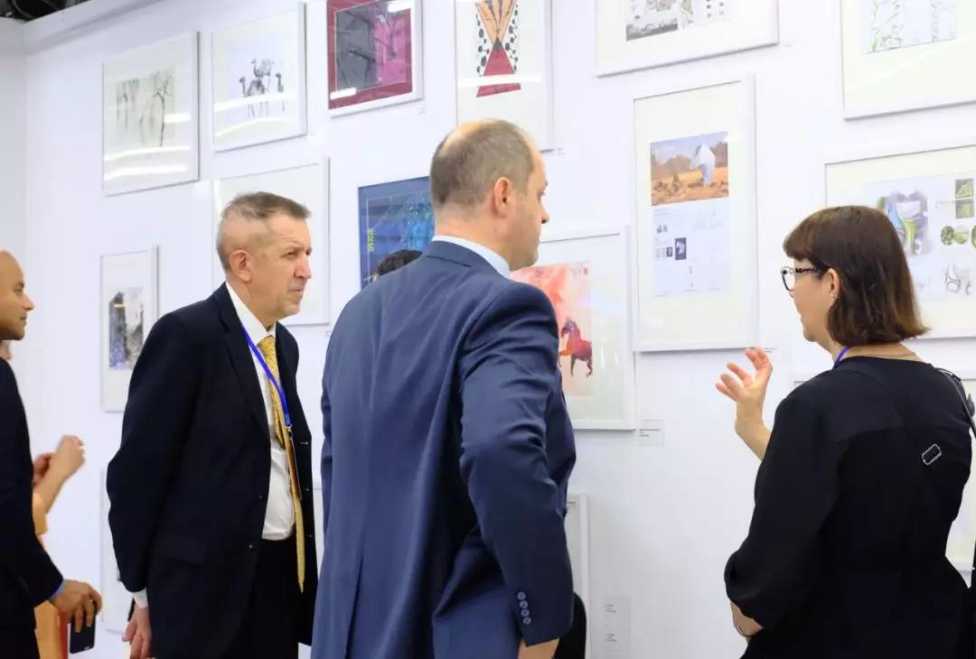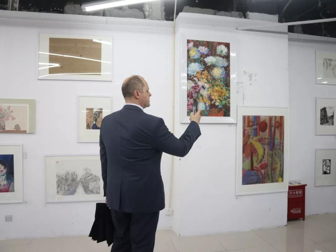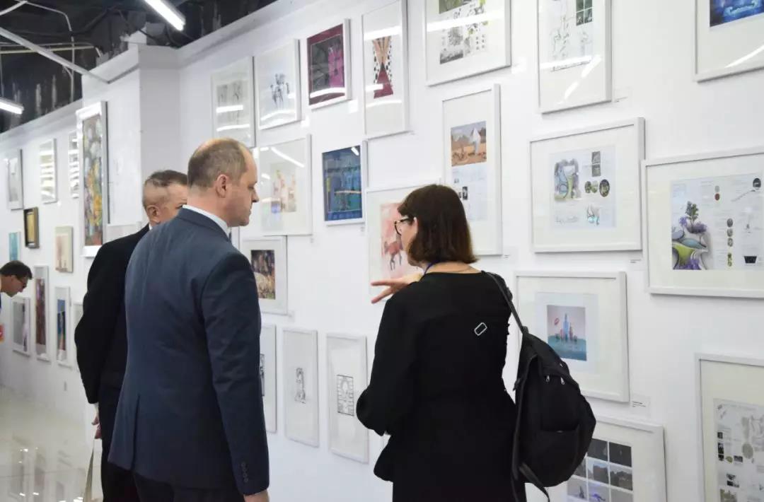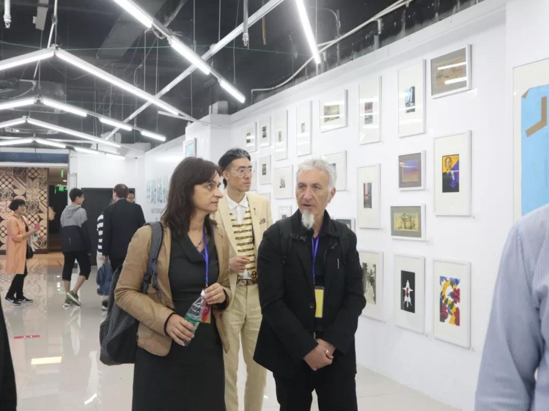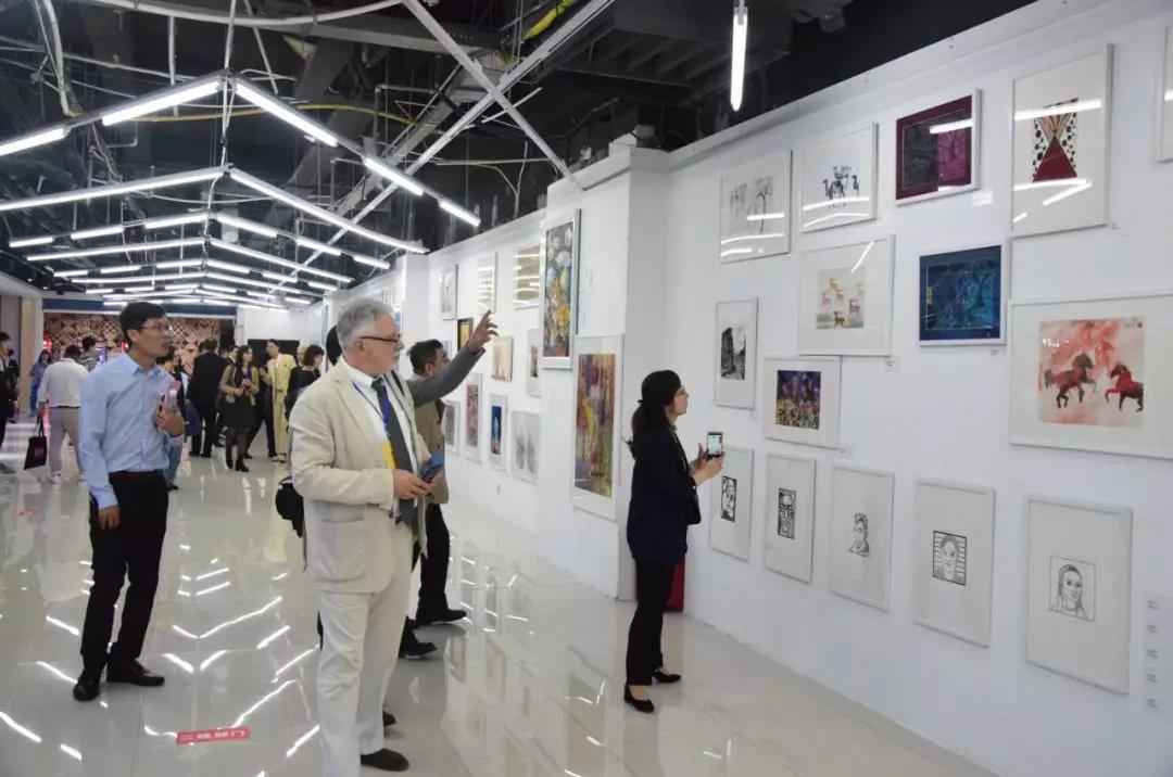 5月18日上午,“丝路链接”2019国际大学生艺术作品展在文峰大世界举行。来自来自意大利、澳大利亚、斯洛文尼亚、乌克兰、克罗地亚、乌兹别克斯坦等国家的嘉宾以及艺术学院党政领导出席展览并共同观展。