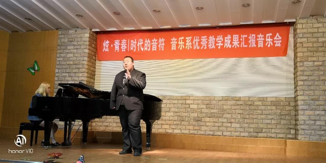 5月20号下午2:00,艺术学院音乐系优秀教学成果“时代的音符”音乐会在钟秀校区主报告厅举行。音乐系主任朱健主持音乐会。