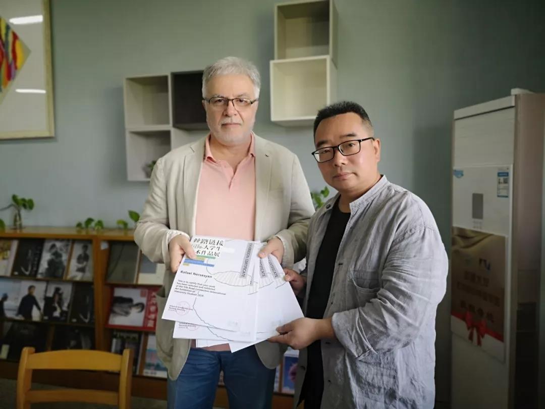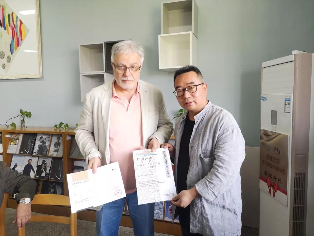 仪式上,Aram Isabekyan和Arthur Hovhannisyan分别向艺术学院赠送了艺术作品,张卫代表艺术学院向其颁发作品收藏证书,并颁发了“丝路画语——2019一带一路国际美术作品展邀请展”和“丝路链接——2019国际大学生艺术展”作品参展证书。
