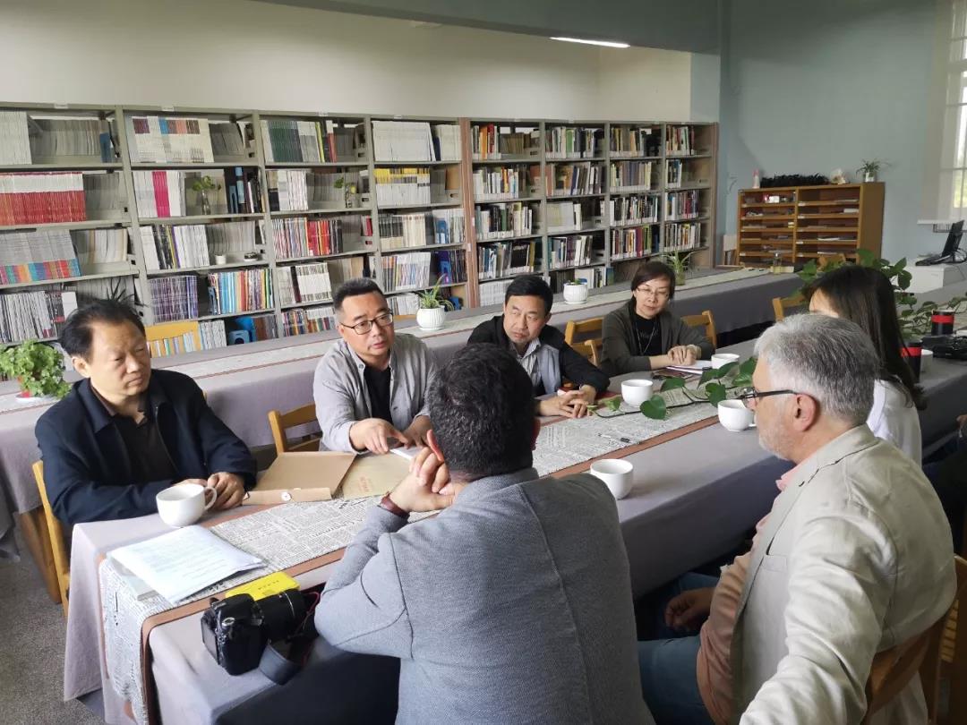 艺术学院院长张卫与亚美尼亚国立美术学院院长Aram Isabekyan代表双方为研究中心共同揭牌。双方就教师互访、学生游学、科学研究等具体事项进行了细致探讨,并初步达成了在南通大学举办亚美尼亚文化节的意向。