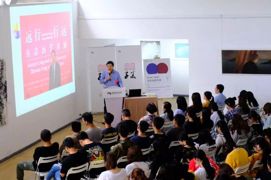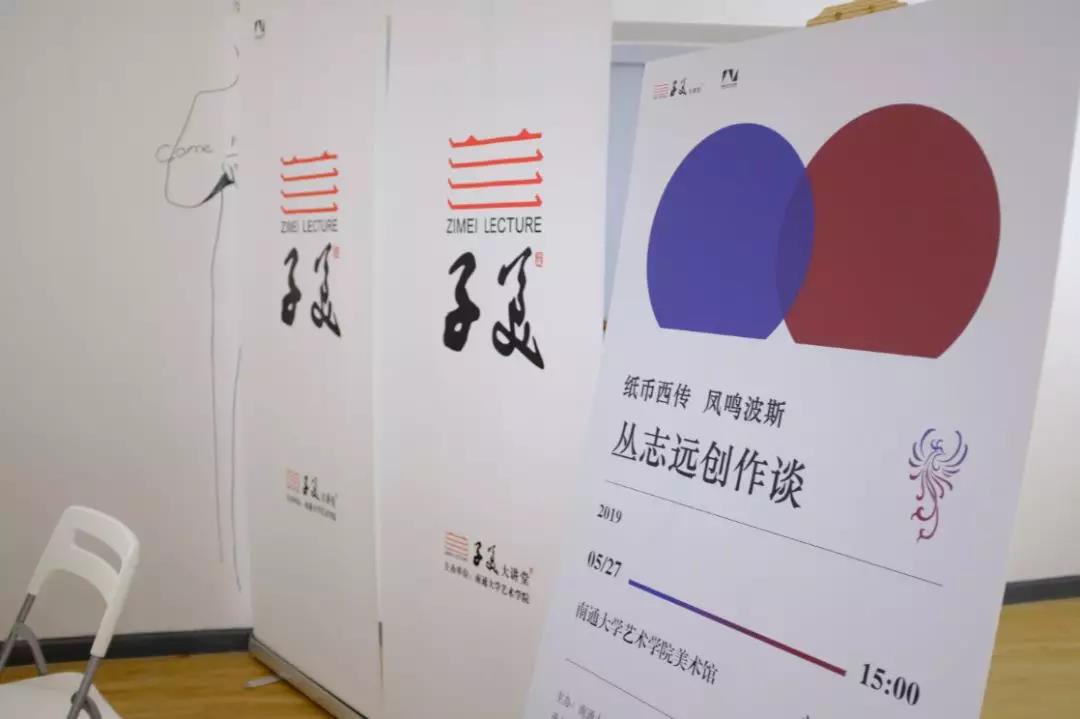 2019年5月27日,美国威廉帕特森大学版画系主任教授、中国艺术中心主任、全美华人美术教授协会董事会主席、著名艺术家丛志远先生走进南通大学艺术学院子美大讲堂。此次讲座的主题为:纸币西传 凤鸣波斯——丛志远创作谈。丛志远教授从《纸币西传凤鸣波斯》作品的创作观念、创作过程等几个阶段,与同学们进行了讨论交流。