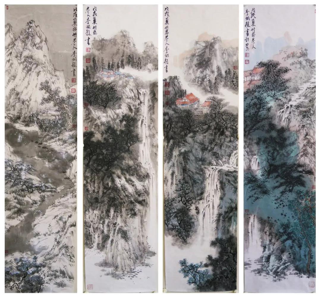 《四季山水四条屏》,136×68cm×4,纸本水墨,2018