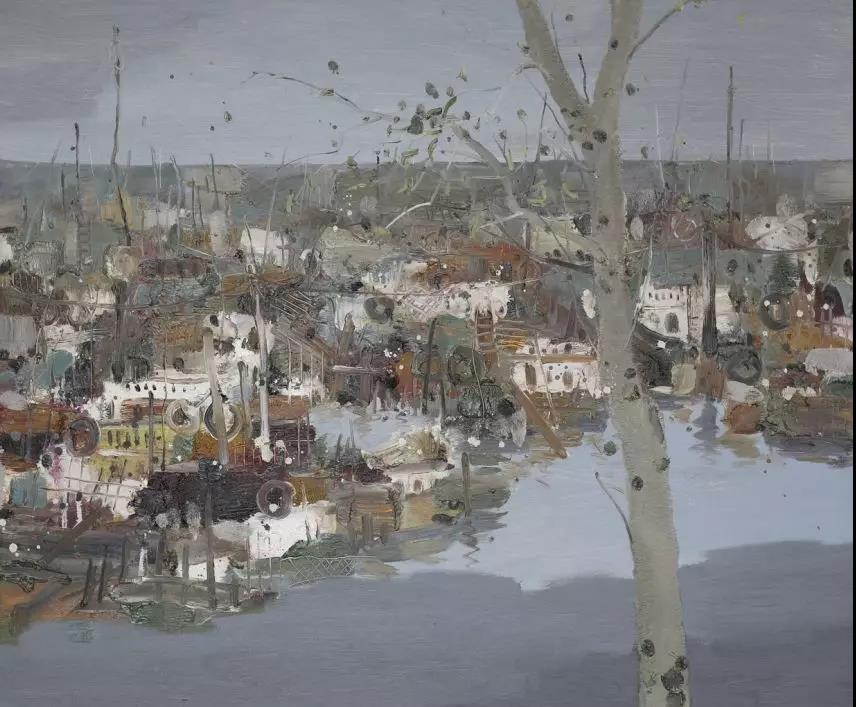 山水画作品主要创作类型:现代雪景山水画、意象山水画、青绿山水画和田园山水画。