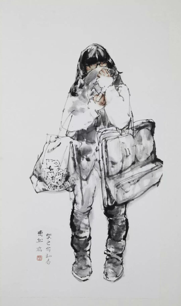 《人物写生》,178×96㎝,纸本水墨,2014年
