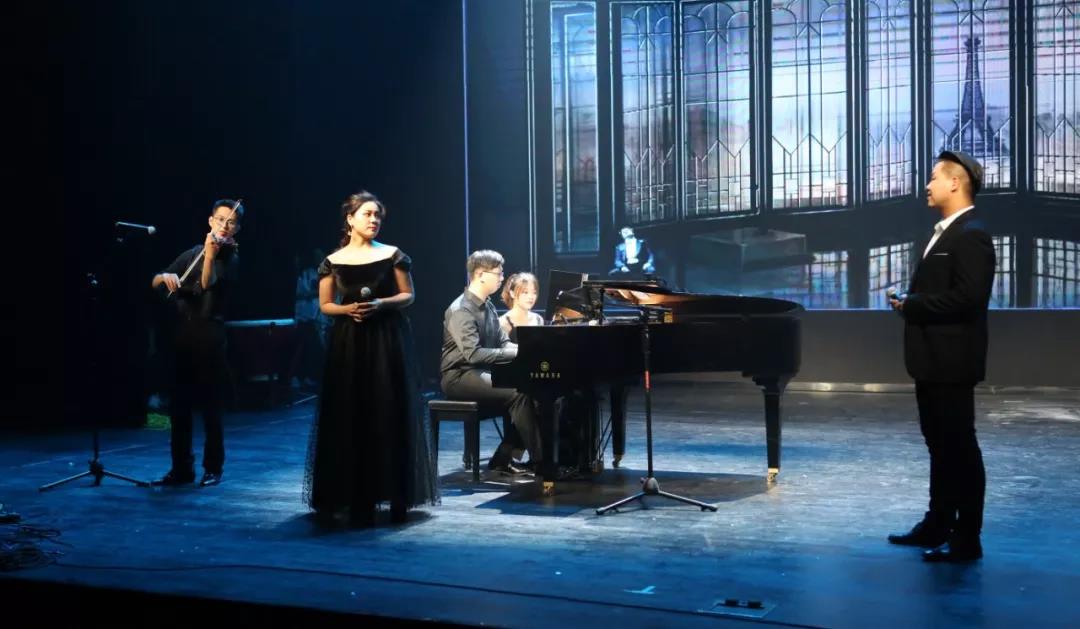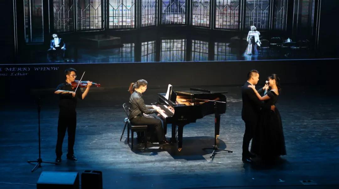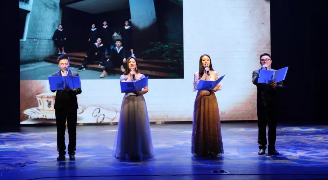 当晚,2015级的学生们为大家呈现了一场视听盛宴。开场舞《Kill This Love》、《数码宝贝》,热烈奔放,点燃晚会现场,拉开了音乐会的大幕;刘郁惟、徐金带来的歌剧《风流寡妇》片段《默默倾听》,充分显示了其扎实的音乐功底;吉他合奏《风向仪》,曲风清新明快;四手联弹《Flower Dance》,行云流水般的琴声,让原本浮躁的心随着音乐的流动流向平静、安宁;一首《飘向北方》在现场彻底引燃整个舞台,将本场音乐会推向高潮;舞蹈《夜上海》使观众在很短的时间里回到了老上海;音乐剧《WhoWill Love Me As I Am》用细腻清心的声线打动了无数听众的心;民乐合奏《权御天下》,让观众进一步感受到了音乐的魅力;《一样的月光》,激昂而熟悉的旋律让将音乐会的气氛推向顶点;诗朗诵《致毕业生》既是对校园生活的美好回忆,也是对母校的深情表白;男女声四重唱《不忘初心》,铿锵豪迈,大气磅礴,表达了音乐系全体毕业生爱党爱国的情怀、志存高远的决心;音乐会在音乐系15级全体成员带来的大合唱《从前慢》中圆满落下帷幕,离别的忧伤和对美好未来的向往交织在一起,不舍与眷恋的情绪弥漫在晚会的现场。
