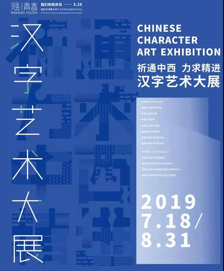 为传承中华优秀传统文化,深入推动南通文化艺术发展,促进南通大学与南通地方文化建设的紧密融合,南通大学党委宣传部、南通大学图书馆、南通大学团委、南通大学艺术学院、南通市设计师协会、南通市青年美术家协会、南通市青年书法家协会联合举办了此次“祈通中西,力求精进”汉字艺术大展。