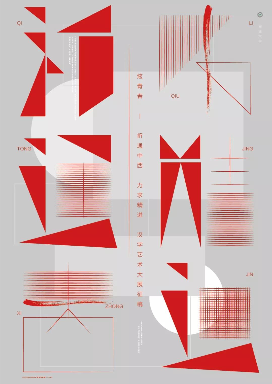 为传承中华优秀传统文化,深入推动南通文化艺术发展,促进南通大学与南通地方文化建设的紧密融合,南通大学党委宣传部、南通大学图书馆、南通大学团委、南通大学艺术学院、南通市设计师协会、南通市青年美术家协会、南通市青年书法家协会联合举办了此次“祈通中西,力求精进”汉字艺术大展。