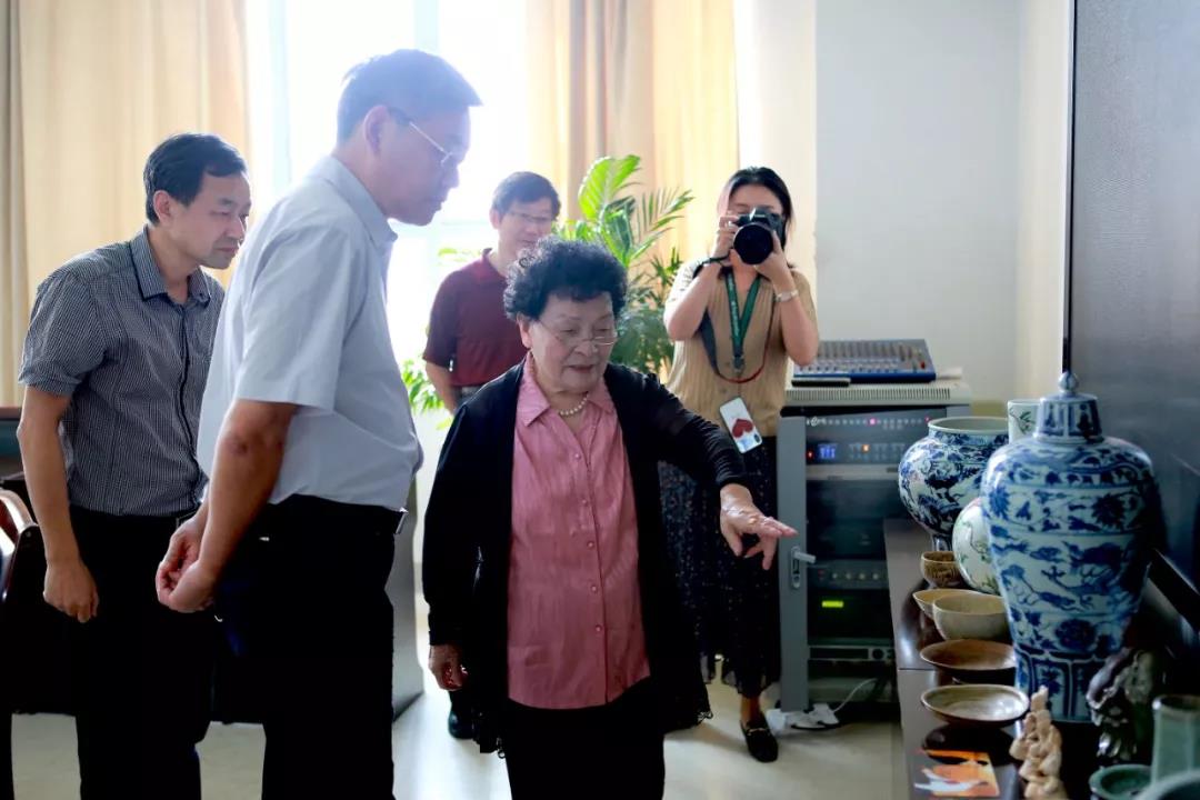 陈丽琼教授是我国著名的古陶瓷考古专家,现年87岁高龄的陈女士专注涂山窑等研究领域已有30余年,对我国古代文物的发掘与保护起到了不容小觑的作用,在我国考古界享有不可估量的声誉。此次捐赠,包含历史考古瓷器类书籍2000余册,古代瓷器110件,仿古瓷器60件,其中著名陶瓷专家亲制瓷器10件,历代瓷器标本涵盖44个窑口共计3951片。其中包含宋代青白瓷碗、宋兔毫盏、宋玳瑁盏、南朝莲花纹大碗、唐代人物俑等宝贵文物,以及青瓷界泰斗、国宝级大师叶宏明亲制的官窑胆瓶、观音和罗汉,中华仿古瓷第一人黄云鹏亲制的青花大罐子等物件。陈丽琼教授选择南通大学作为捐赠对象,不仅体现了她对高等教育事业的一片热心与赤诚关爱,也体现了对南通大学的极致信任与强烈支持。