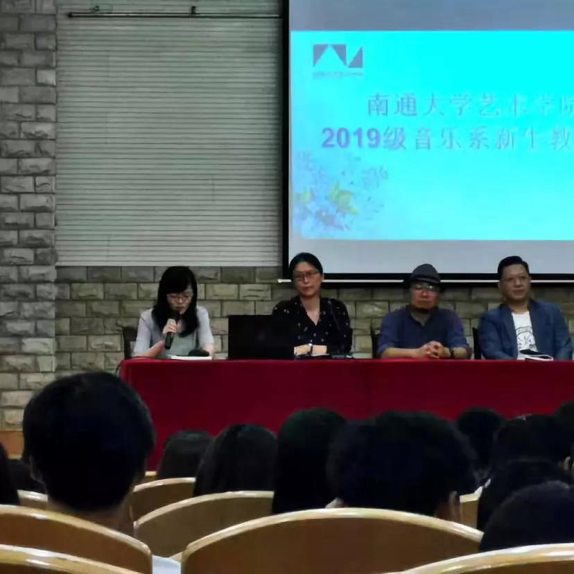 9月27日中午,音乐系2019级新生专业入学教育会在主报告厅举行。学院党委委员、学工办主任张诚,学院党委委员、音乐系党支部书记严峻,音乐系副主任杨珽珽、洪宜德、徐海东,教研室主任朱瑾、陆媛媛、臧云扬和新生班主任郭蕴、崔帆、王娅及音乐系2019级全体新生参加本次活动。