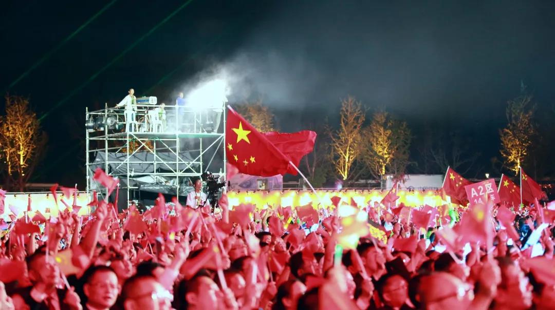 演出最后,我院学生手持红旗上台与南通市社会各界群众一同谢幕,共同演唱《我和我的祖国》,在歌声中祝福伟大祖国走向繁荣富强。