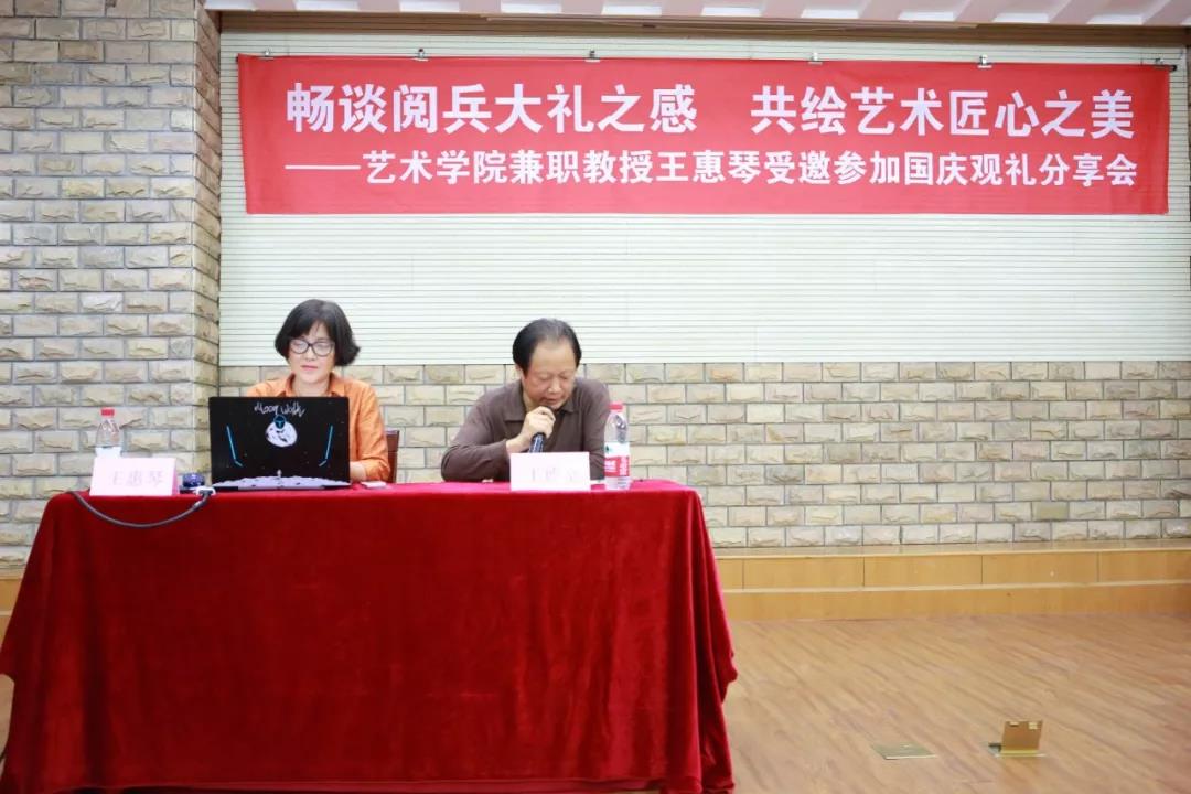 10月9日下午,艺术学院邀请学院兼职教授王惠琴老师为艺术学子做了一场精彩的国庆观礼分享会。学院全体党员、入党积极分子、部分新生参加了本次分享会。学院副处级专员王德宽主持。