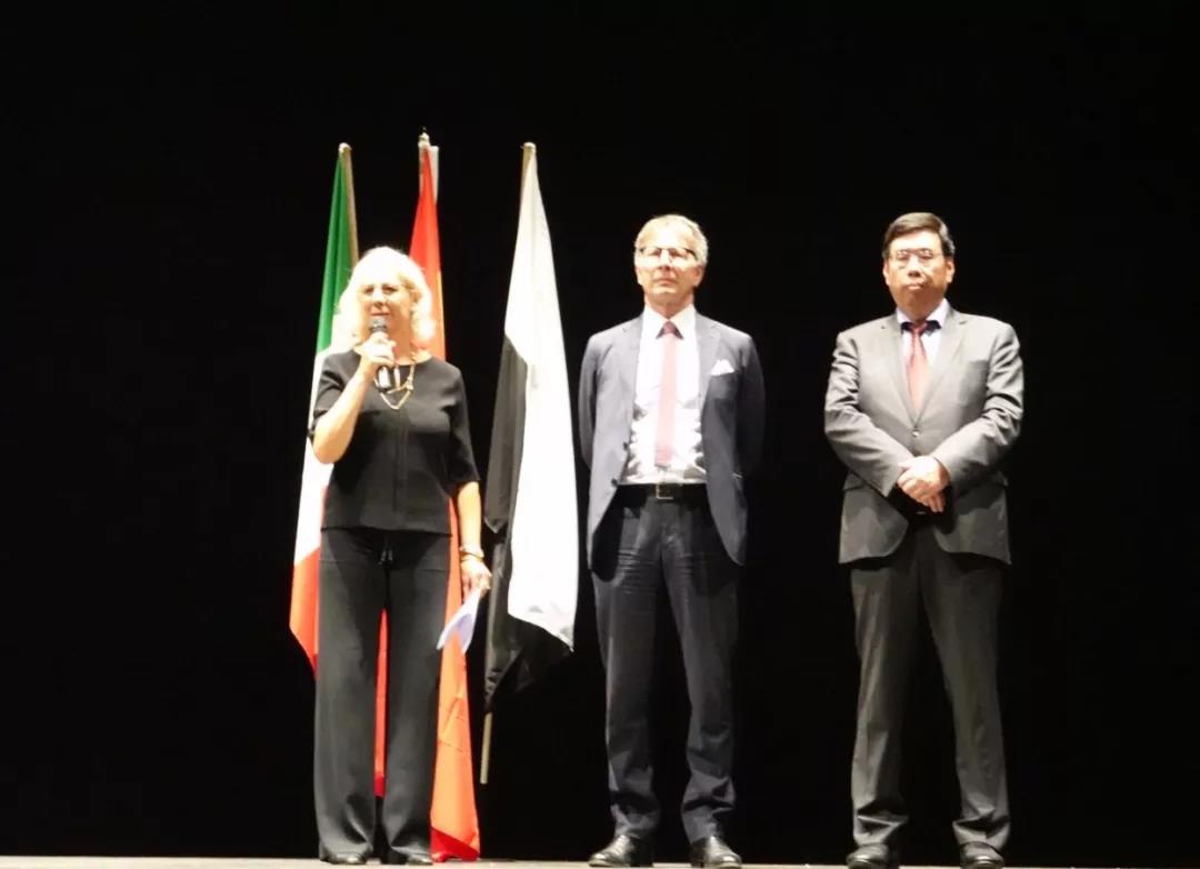 音乐会在锡耶纳国家大剧院隆重举行。中意艺术家联袂献演,向海外华人及意大利观众传递对伟大祖国70华诞的祝福。中国驻佛罗伦萨总领事王文刚先生、意大利托斯卡纳大区副行政长官(副省长)Barni教授、锡耶纳市长Luigi De Mossi先生、锡耶纳大学校长Francesco Frati教授、锡耶纳外国人大学国际交流处处长Carla Bagna教授、锡耶纳音乐学院院长Luciano教授、锡耶纳省中心医院院长、锡耶纳对外交流委员会委员项徐伟等社会各界人士出席音乐会。中国驻佛罗伦萨总领事王文刚先生、意大利托斯卡纳大区副行政长官Barni教授、锡耶纳市市长Luigi De Mossi先生分别致辞。王总领强调了在“丝绸之路”文化复兴和“一带一路”战略合作背景下中意双方进一步沟通协作的重要意义,对新时代双方的艺术互通、文化互鉴、人文共享等目标寄予了新的希望。副省长和市长也希望南通和锡耶纳两座城市能够扩展合作领域、共享发展成果,成为国际友好城市的典范。