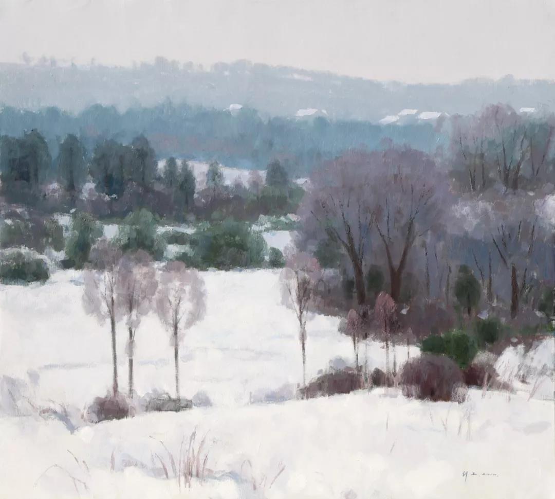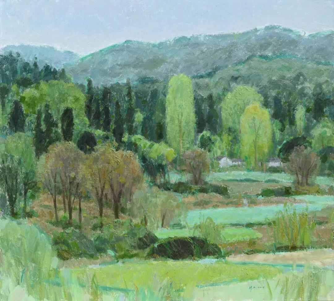 沈先生的艺术探索之所以很有价值,我觉得就在于他把西方油画这种载体、形式与中国的自身文化进行了有机的结合,真正在寻找、感受和表达的过程中,自觉地关注这种文化中心,画出具有中国文化内涵意境的油画风景。特别是在勾勒江南景色上,某种程度上来说具有很大的挑战性。油画作品中的平原如何做到又开阔又清静,有大的视野,又有非常抒情的视角,许多油画艺术表达上的难题,在沈先生长期的探索中,得到了很好的解决。