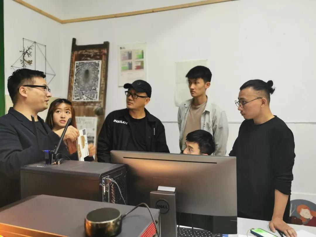 时澄与沙锋先后参观了艺术设计系创意工作室、拉拉猴创意工作室,听取紫金奖创意竞赛团队与大学生创意节竞赛团队的设计想法与设计案例。针对同学们的设计案例,两位导师以多年的设计经验给予专业指导。