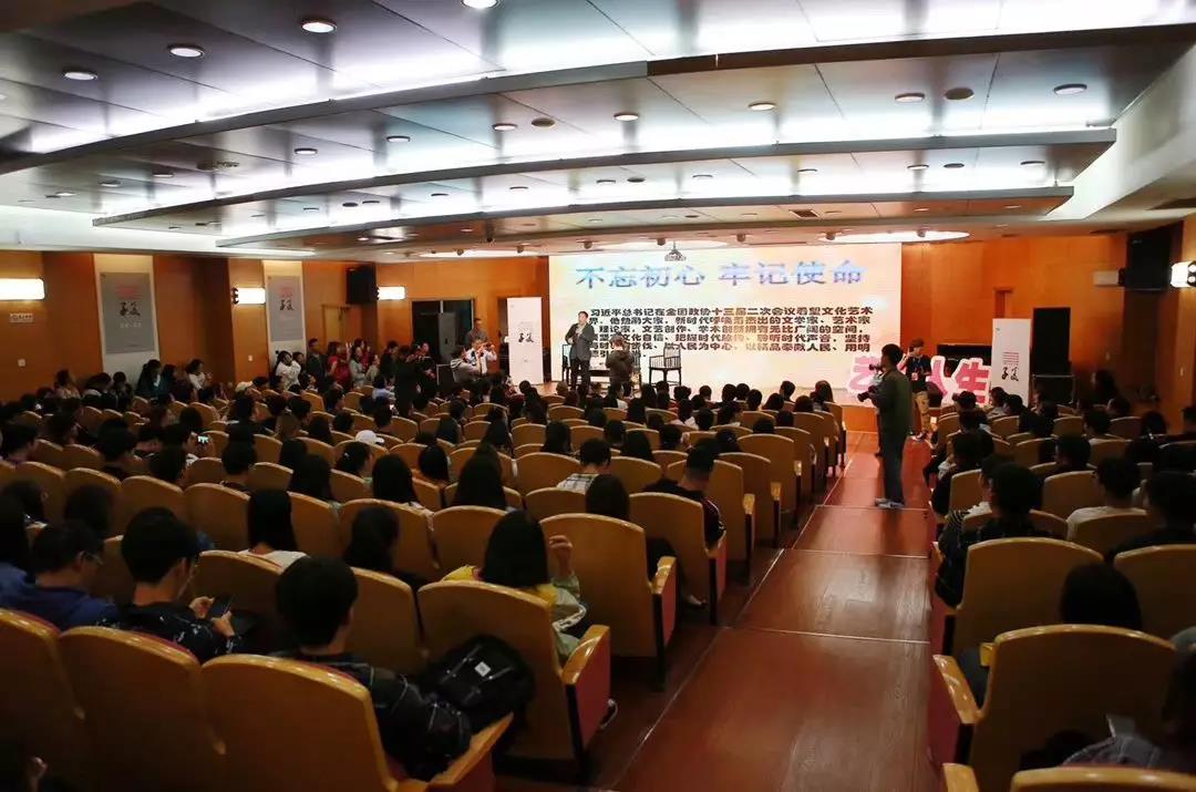 最后,姜昆对学生们寄予了很大的期望,他希望年轻人,尤其是学艺术的年轻人,要传承老一辈艺术家的优秀品德,深入生活,发现生活中鲜活的素材,静下心来,寻找艺术欣赏和艺术创作的真谛。作为南通大学的兼职教授,他表示接下来会和南通大学艺术的师生们有更多的合作,让中华曲艺进校园变得更加系统化,专业化。提问环节,同学们争相提问,他们就艺术创作的素材、以及艺术创新的支撑等问题请教姜昆先生,姜昆先生一一精彩作答。