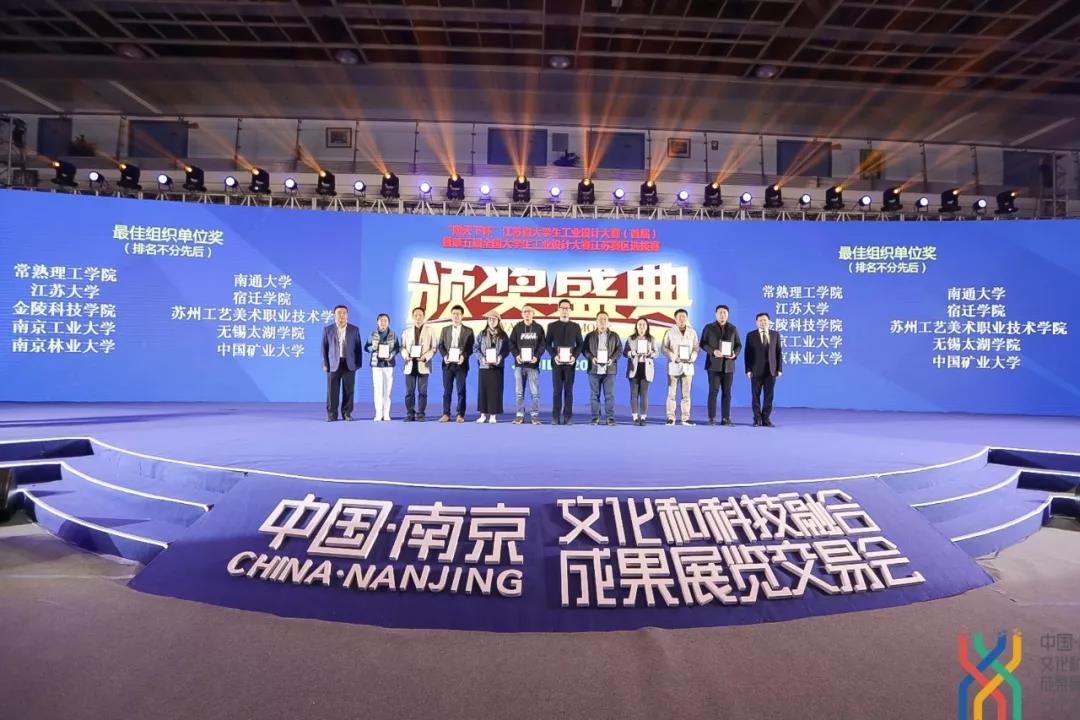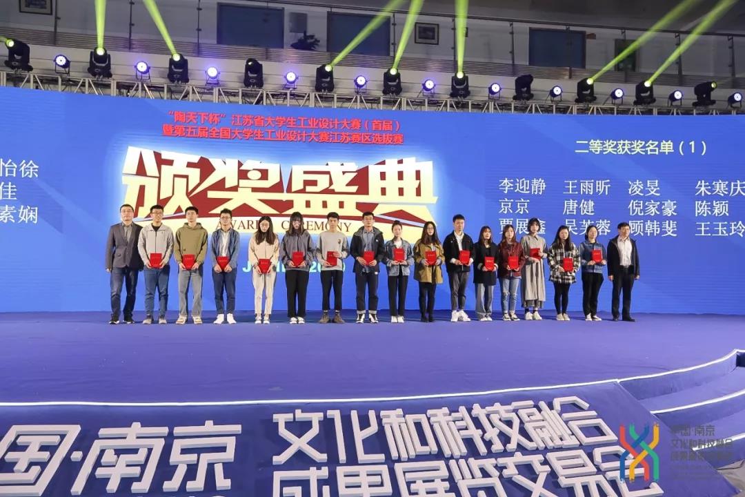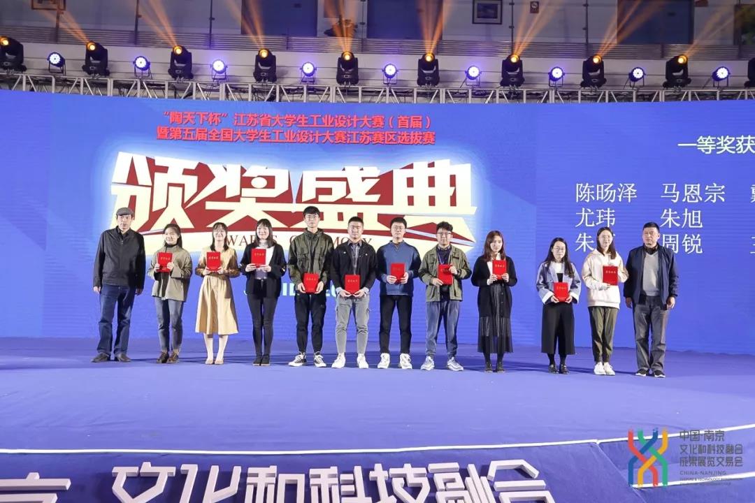 “陶天下杯”江苏省大学生工业设计大赛(首届)暨第五届全国大学生工业设计大赛江苏赛区选拔赛围绕生产工具、交通工具、医疗康养器械、电子电器、家居产品、日用消费品、公共设施、文创产品、交互与服务设计等九大类别,引导全省各高校的工业设计、产品设计等相关学科专业学生进行创新设计。大赛于2019年9月正式启动,共收到全省28所院校选送的1476件有效作品,经初评产生了200件入围作品。10月27日,决赛答辩在南京国际展览中心南京文化科技融交会现场举行。我院工业设计系学生斩获一等奖1项,二等奖4项,三等奖12项,沈文晔、张磊、杜微3位老师荣获优秀指导教师奖,我校荣获最佳组织单位奖。工业设计系沈雯晔主任带领学生赴宁参加了决赛和颁奖典礼。