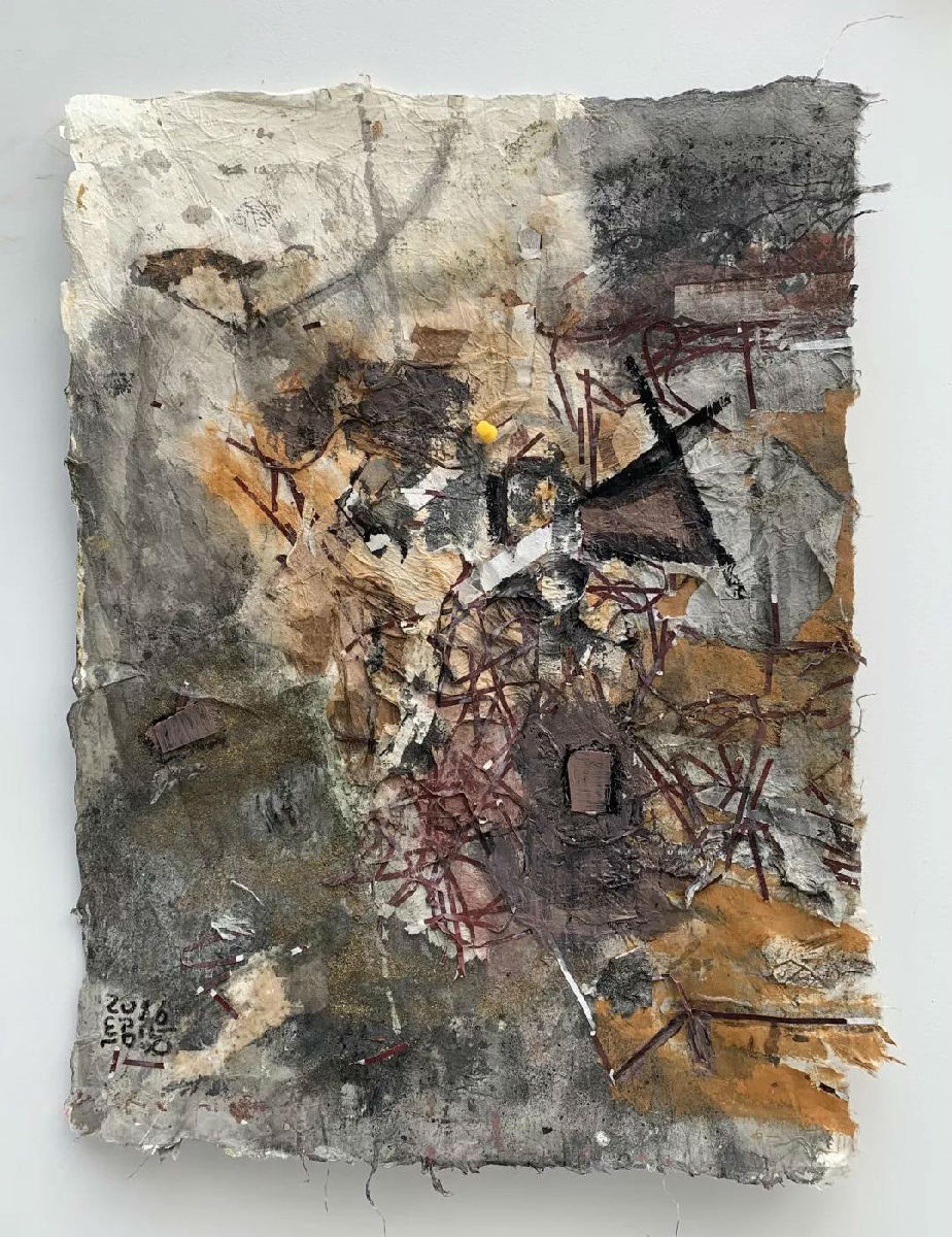 这作品将自己投射到一个没有固定价值的黎明地带(之二)80x57cm 纸上综合材料 2017年