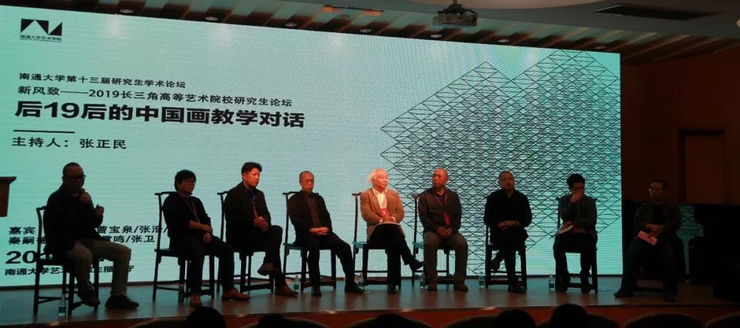 本次对话作为南通大学第十三届研究生论坛“新风致——2019长三角高等艺术院校研究生论坛”的系列活动,由全国艺术专业学位研究生教育指导委员会指导,由江苏省艺术学类研究生教育指导委员会、南京师范大学和南通大学主办,南京师范大学美术学院、南通大学研究生院和南通大学艺术学院承办,由中央美术学院中国画学院、中国美术学院中国画与书法艺术学院、北京电影学院美术学院、西安美术学院中国画学院、广州美术学院中国画学院、南京艺术学院美术学院、中央民族大学美术学院、首都师范大学美术学院、华东师范大学美术学院、山东师范大学美术学院等十余所综合性院校作为学术支持单位共同参与。旨在呈现19后中国画教学的基本状态、主要趋势、总体特点以及呈现问题,从而激发出高等教育中关于中国画教学更多、更好的新思路与新方法,为青年一代艺术素养的提升提供更高、更广的空间与平台。