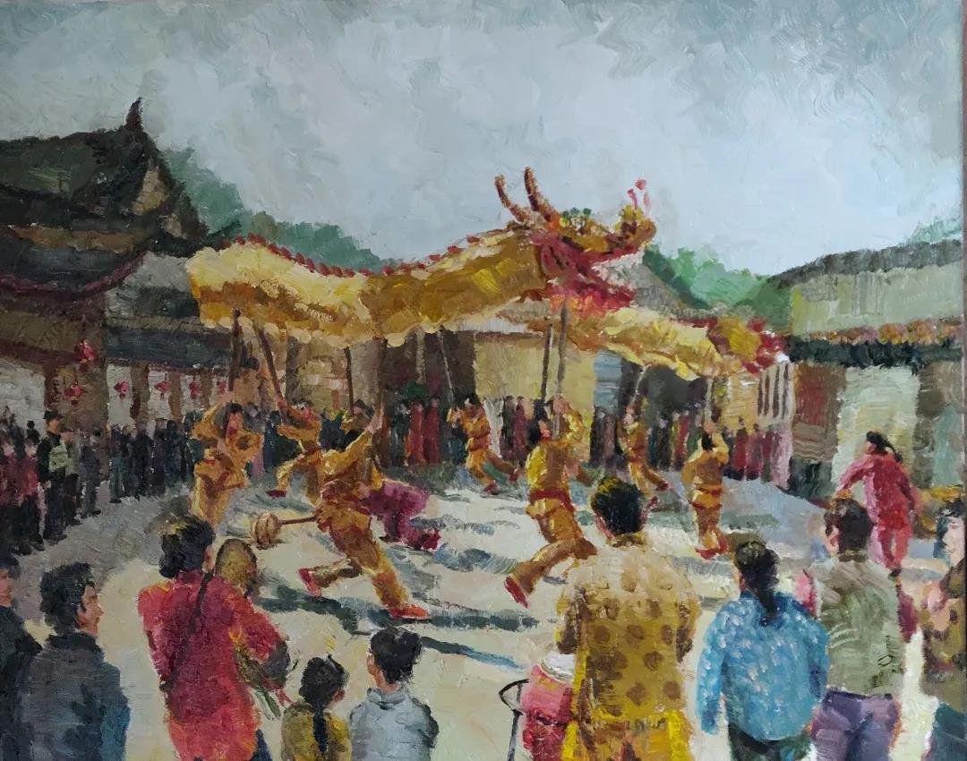 美术师范184 姜伟琦 圣堂寺舞龙 油画