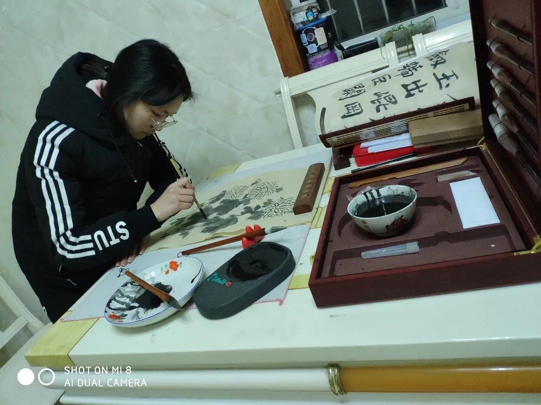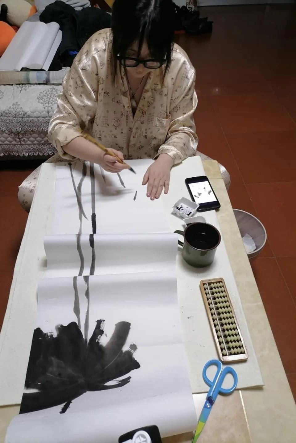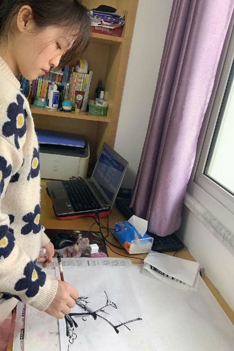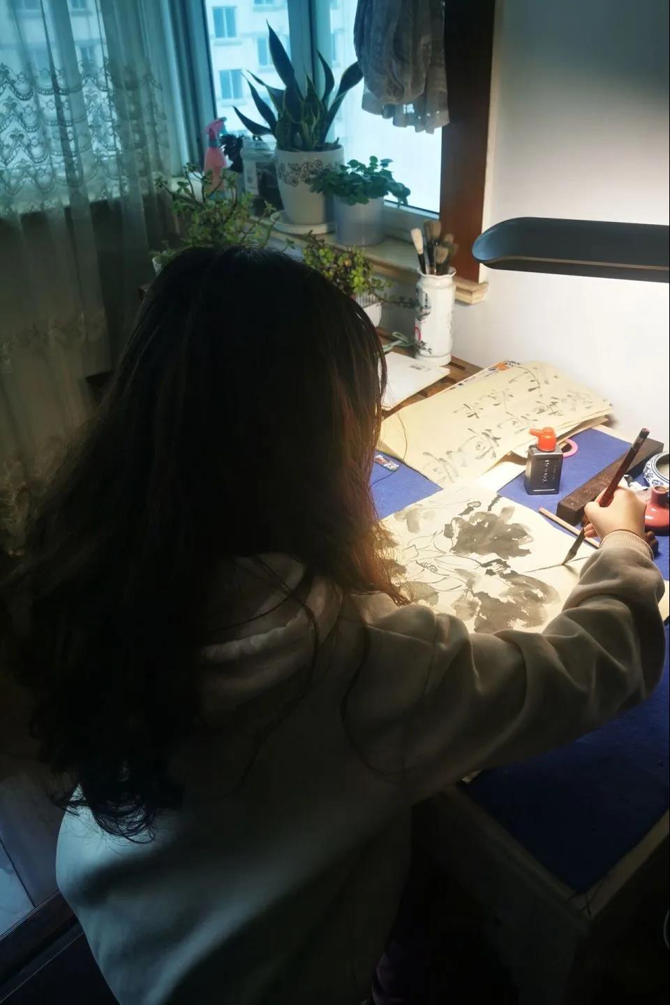 在突如其来的疫情面前,我们每个人都变得恍恍惚惚,不知所措。这样的假期前所未有,然而,每当我听到来自不同城市传来可怕的信息,都坐立难安,辗转反侧。从前上战场的是士兵,现在上战场的却是医护人员,我们国家也在此次疫情面前做出了巨大的努力。就在这“封闭式的生活”中,我坐在桌子前,拿起笔,落笔,享受毛笔在纸上摩擦、跳跃的过程中,整个世界都那样的安详、静谧。提笔之前的烦躁不安统统消失,剩下的只有我在享受艺术的快乐。