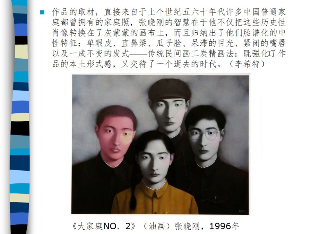 讲座过程中,鲁虹教授结合了时代背景、经济文化、国外理论影响等,列举了以罗中立、张晓刚、周春芽等为代表的一系列著名艺术家的创作实践作品,从成长到发展的过程出发,对他们的当代艺术创作进行了客观而清晰的解读。