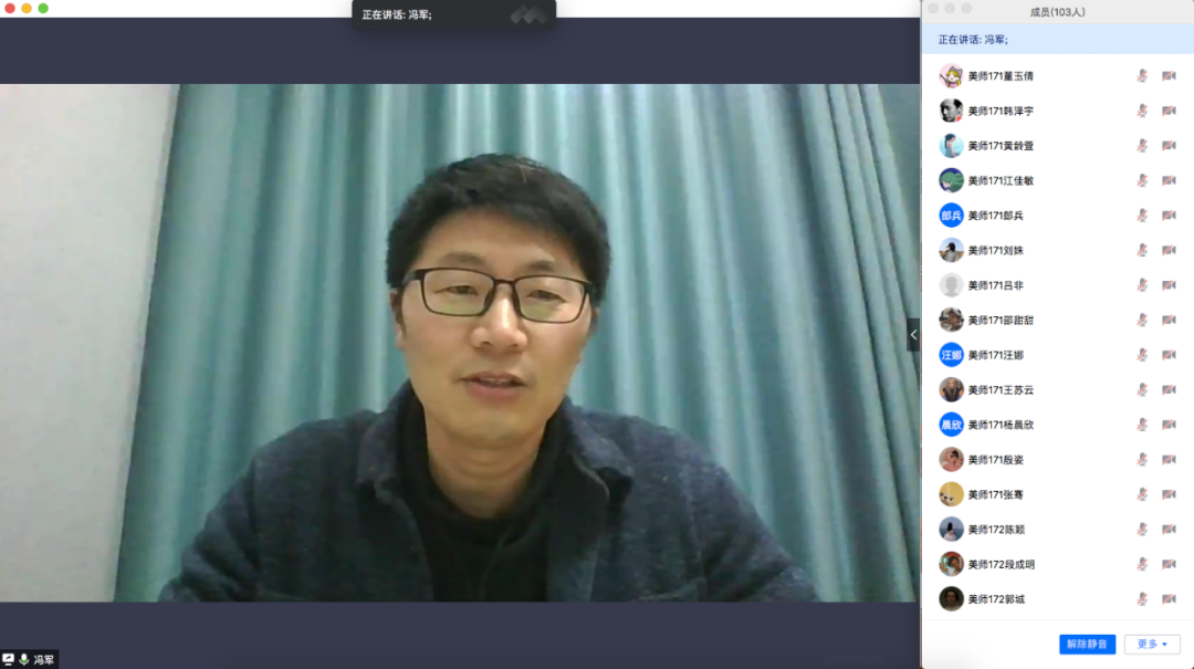 3月27日下午,小勺子自然美育工作站负责人、如东县教师发展中心美术研训员冯军老师受邀为艺术学院师生作了题为《诗意栖居丨一种别样的生存境界》的直播讲座,百余位美术师范专业师生听了分享。