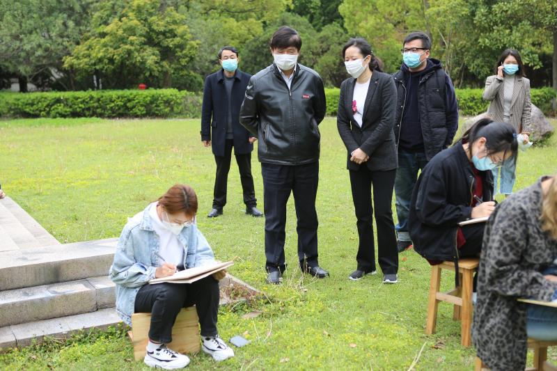 卫东一行视察了教学16号楼的线上线下同步课程、艺术学院沈雯晔老师主讲的《产品设计表现》,指导了在孔子园、张謇园和美术馆开设的由周晨阳等老师任教的实践写生课程,走访了在主教楼、教学5号楼进行的部分线上课程,并与艺术学院的学生进行了亲切的交流。